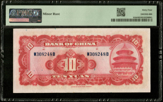 CHINE - Bank of China, 10 Yuan 1940 Pick 85b NEUF / PMG Choice Unc 64