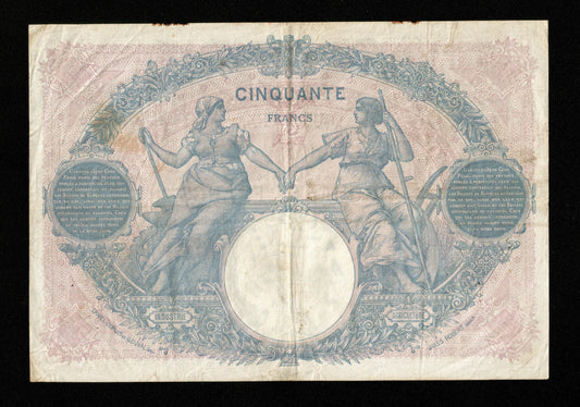 FRANCE - 50 Francs Bleu et Rose 1918 F.14.31, P.64e TB / Fine