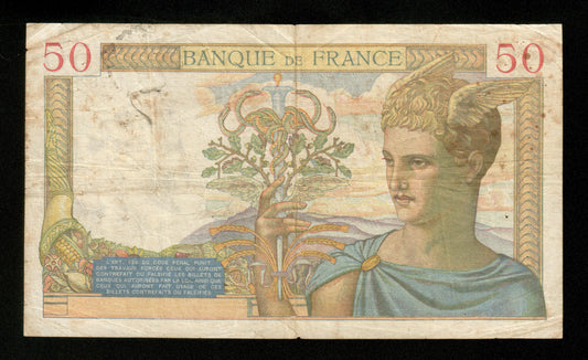 FRANCE - 50 Francs Cérès Modifié 1938 F.18.10 Pick 85b B / Good