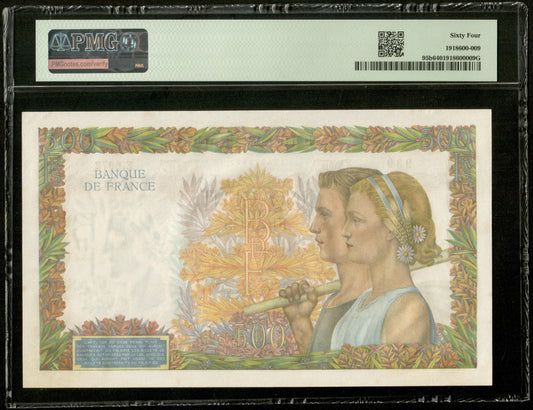 FRANCE - 500 Francs La Paix 1942 (1941-1943) F.32.41 Pick 95b NEUF / PMG Choice Unc 64
