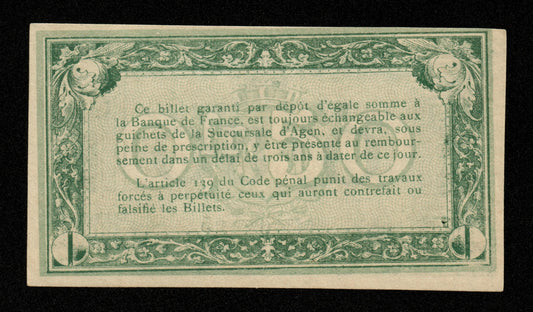 FRANCE - Chambre de Commerce d'Agen, 1 Franc 1914 JP.02.03 TTB+ / VF+Prix habituel €12,00 EURPrix habituelPrix unitaire par-