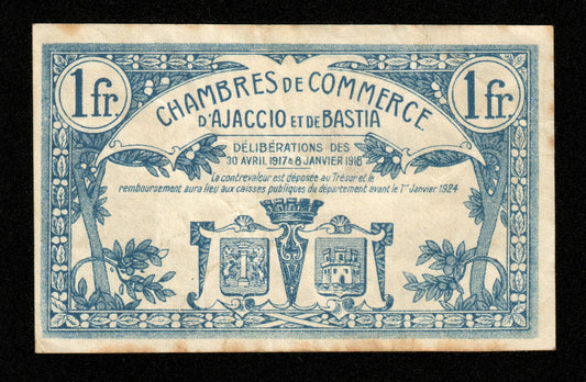 FRANCE - Chambre de Commerce d'Ajaccio et Bastia, 1 Franc 1917-1918 JP.03.07 TTB / VFPrix habituel €17,00 EURPrix habituelPrix unitaire par-