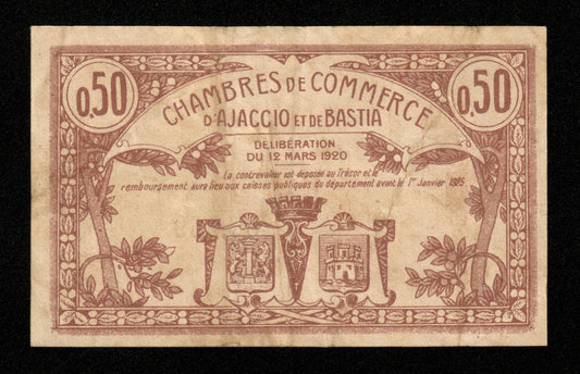 FRANCE - Chambre de Commerce d'Ajaccio et Bastia, 50 Centimes 1920 JP.03.08 TTB / VFPrix habituel €15,00 EURPrix habituelPrix unitaire par-