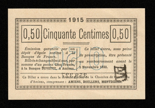 FRANCE - Chambre de Commerce d'Amiens, 50 Centimes 1915 JP.07.14 pr.NEUF / UNC-Prix habituel €10,00 EURPrix habituelPrix unitaire par-