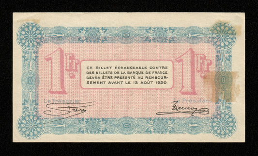 FRANCE - Chambre de Commerce Carcassonne (Aude), 1 Franc ANNULÉ 1920 JP.38.18 pr.SUP / XF-Prix habituel €35,00 EURPrix habituelPrix unitaire par-
