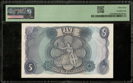 GRANDE BRETAGNE - Bank of England, 5 Pounds (1966-1970) Pick 375b NEUF / PMG Choice Unc 64
