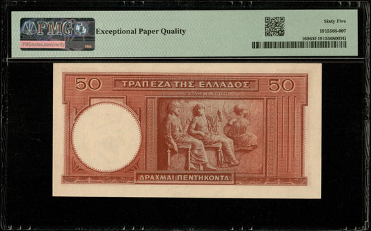 GRÈCE - 50 Drachmai 1941 (1945) Pick 168 NEUF / PMG Gem Unc 65 EPQ