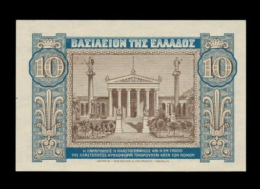 GRÈCE - GREECE - 10 Drachmai 1940 P.314 SPL / AU