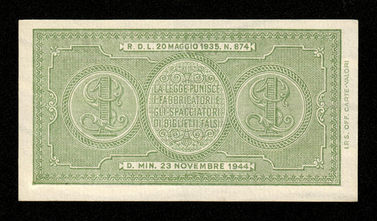 ITALIE - ITALY - 1 Lira 1944 P.29b SPL / AU