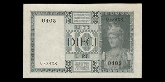 ITALIE - ITALY - 10 Lire 1939 P.25c pr.NEUF / UNC-