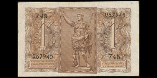 ITALIE - ITALY - 1 Lire 1939 P.26 SPL / AU