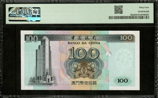MACAO - MACAU - 100 Patacas 1999 P.98a NEUF / PMG Choice Unc 64