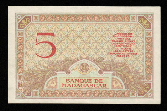 MADAGASCAR - 5 Francs (1937) P.35 NEUF / UNC