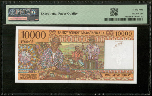 MADAGASCAR - 10000 Francs, 2000 Ariary (1995) Pick 79b PMG Superb Gem Unc 69 EPQ