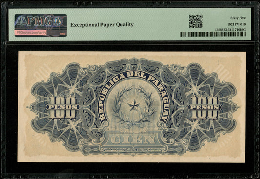 PARAGUAY - 100 Pesos 1907 Pick 159 NEUF / PMG Gem Unc 65 EPQ
