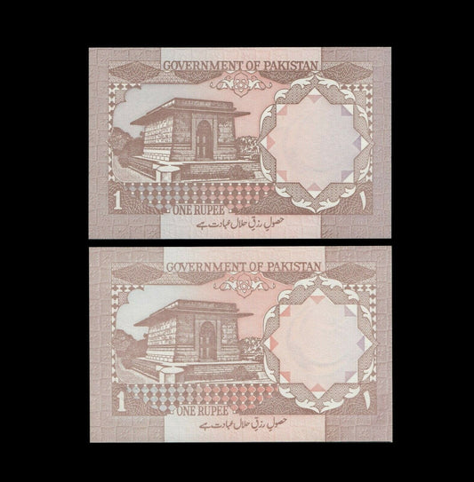 PAKISTAN - 1 Rupee (1984-2001), lot de deux billets P.27l et P.27m NEUF / UNC
