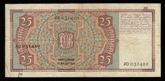 PAYS-BAS - NETHERLANDS - 25 Gulden 1941 P.50 TB / Fine