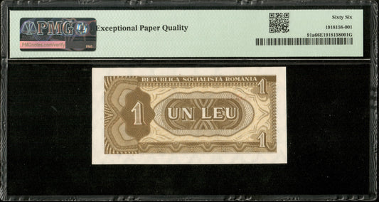 ROUMANIE - ROMANIA - 1 Leu 1966 A.0032 P.91a NEUF / PMG 66 EPQ