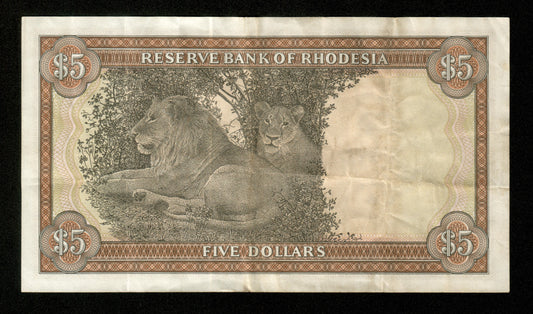 RHODÉSIE - RHODESIA - 5 Dollars 1972 P.32a TTB / VF