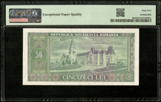 ROUMANIE - ROMANIA - 50 Lei 1966 Pick 96a NEUF / PMG Gem Unc 65 EPQ