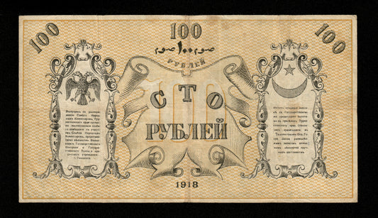RUSSIE - Central Asia, Tashkent, 100 Rubles 1918 Pick S1157 TB+ / Fine+