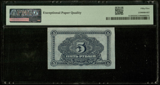 RUSSIE - Far Eastern Republic, East Siberia - 5 Roubles 1920 Pick S1203 PMG AU 55 EPQ