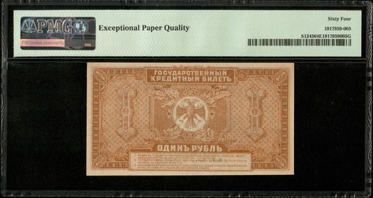 RUSSIE - RUSSIA - Sibérie Est, Priamur, 1 Ruble 1920 P.S1245 NEUF / PMG 64 EPQ
