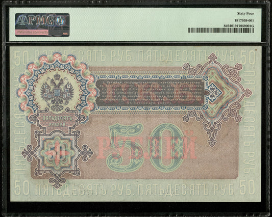 RUSSIE - RUSSIA - 50 Rubles 1899 (1912-1917) P.8d Shipov & Zhikharev pr.NEUF / PMG 64