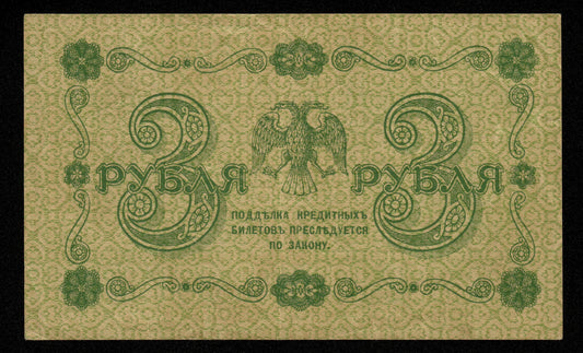RUSSIE - RUSSIA - State Treasury Note, de Millo, 3 Rubles 1918 P.87 TTB / VF