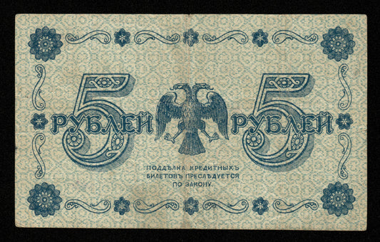 RUSSIE - RUSSIA - State Treasury Note, Osipov, 5 Rubles 1918 P.88 TB / Fine