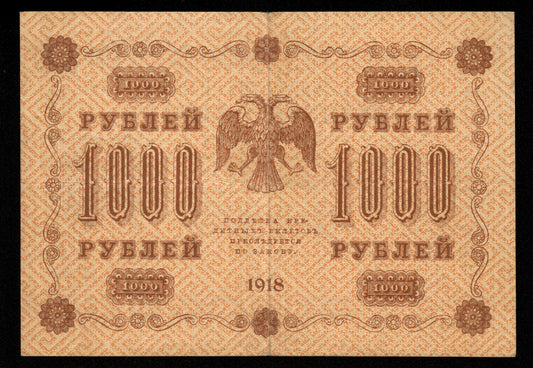 RUSSIE - RUSSIA - State Treasury Note, Zhikharev, 1000 Rubles 1918 P.95 TTB / VF