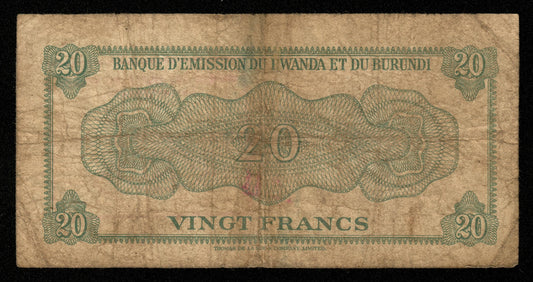 RWANDA-BURUNDI - 20 Francs 1960 P.3a B / Good