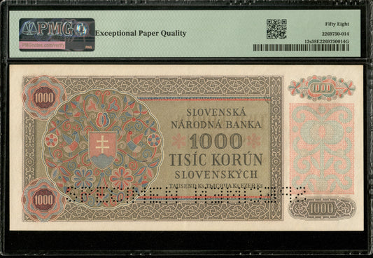 SLOVAQUIE - SLOVAKIA - 1000 Korun Specimen 1940 P.13s SPL / PMG Choice AU 58 EPQ