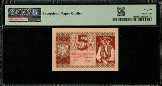 SLOVÉNIE - SLOVENIA - Laibach, 5 Lir 1944 P.R4 (Yugoslavia P.R19) NEUF / PMG 66 EPQ