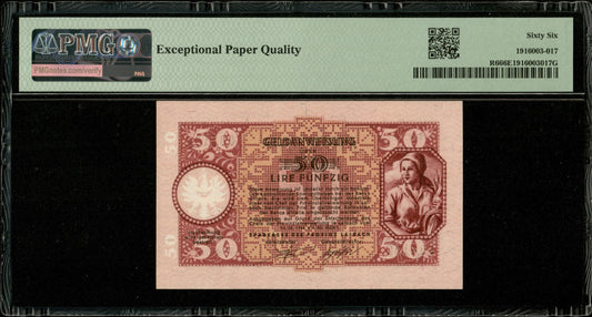 SLOVÉNIE - SLOVENIA - Laibach, 50 Lir 1944 P.R6 (Yugoslavia P.R21) NEUF / PMG 66 EPQ