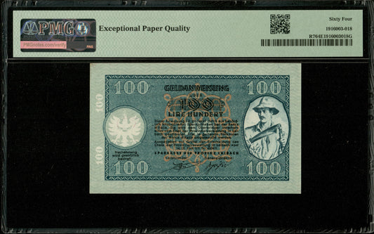 SLOVÉNIE - SLOVENIA - Laibach, 100 Lir 1944 P.R7 (Yugoslavia P.R22) NEUF / PMG 64 EPQ
