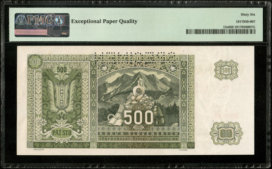 SLOVAQUIE - SLOVAKIA - 500 Korun Specimen 1941 P.12s NEUF / PMG 66 EPQ TOP POP !