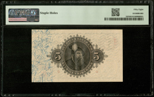 SUEDE - SWEDEN - 5 Kronor 1923 Pick 33f R186662 PMG Choice About Unc 58