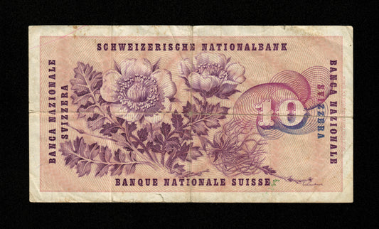 SUISSE - 10 Francs (Franken) 1964 Pick 45i B / Good