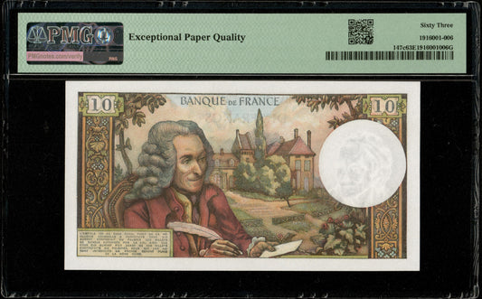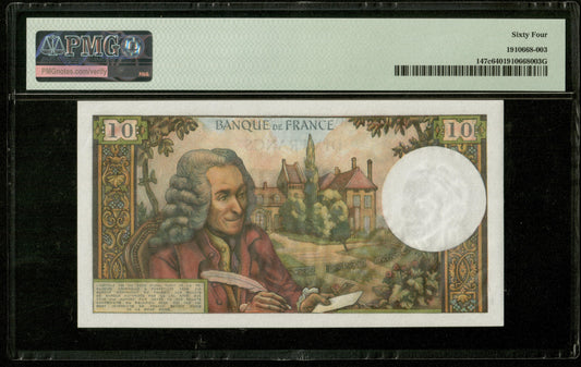FRANCE - 10 Francs Voltaire 1970 F.62.46, P.147c NEUF / PMG 63 EPQ