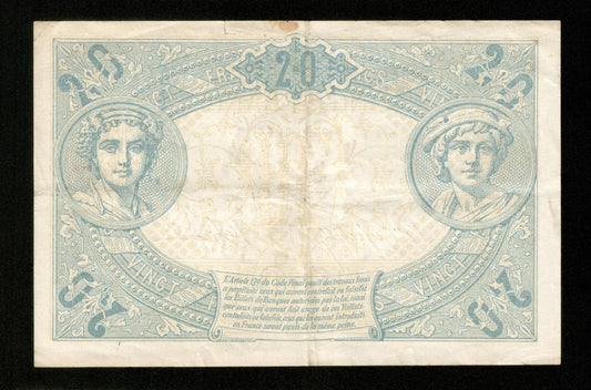 FRANCE - 20 Francs Bleu 1906 F.10.01 Pick 68a TTB / VF