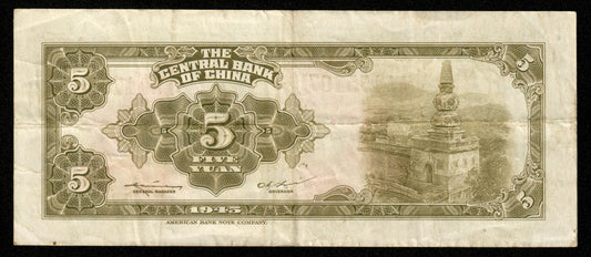 CHINE - Central Bank of China, 5 Yuan 1945 (1948) P.388 TTB / VF