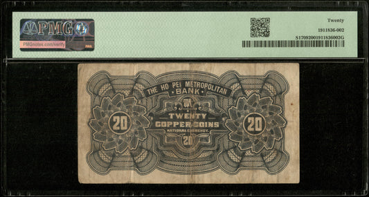 CHINE - Ho pei Metropolitan Bank - 20 Copper Coins 1929 Pick S1709 TB / PMG VF 20