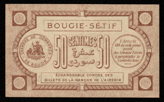 ALGÉRIE - ALGERIA - Chambre de Commerce Bougie Sétif, 50 Centimes 1915 JP.139.01 NEUF / UNC