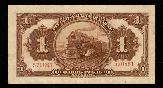 CHINE - CHINA - Russko-Aziatskiy Bank, 1 Ruble 1917 Pick S474a TTB / VF