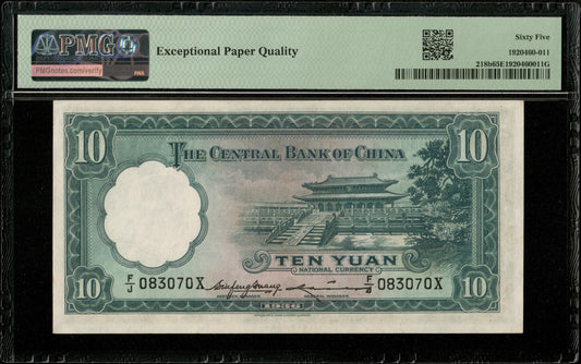 CHINE - Central Bank of China, 10 Yuan 1936 Pick 218b NEUF / PMG Gem Unc 65 EPQ