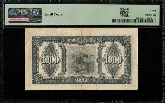 CHINE - CHINA - People's Republic, 1000 Yuan 1949 Pick 848 <123> TB / PMG Very Fine 30