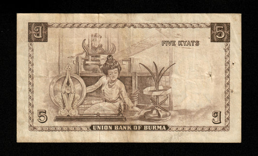 BIRMANIE - BURMA - 5 Kyats (1958) Pick 47 TTB / VF