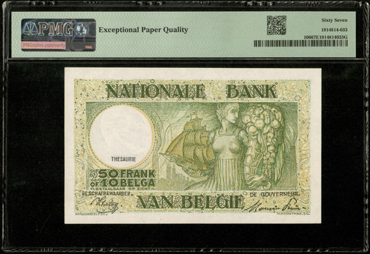 BELGIQUE - BELGIUM - 50 Francs = 10 Belgas 1945 (1935-1947) Pick 106 PMG Superb Gem Unc 67 EPQ TOP POP