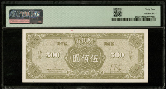 CHINE - Central Bank of China, 500 Yuan 1945 Pick 283a NEUF / PMG Choice Unc 64